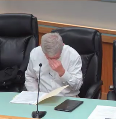 City Manager Pat Haley stresses during discussion