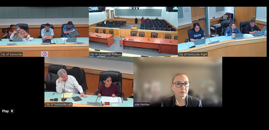 During the discussion, Dolan asked whether someone else from the firm could step into Norton’s role. Norton responded that Sunnyside’s legal problems are too complex to hand off easily and suggested the city’s needs require someone with her level of experience. City Manager Pat Haley also warned that replacing the firm would be expensive and disruptive, saying a new law firm would have to be brought up to speed on a long list of ongoing matters.
